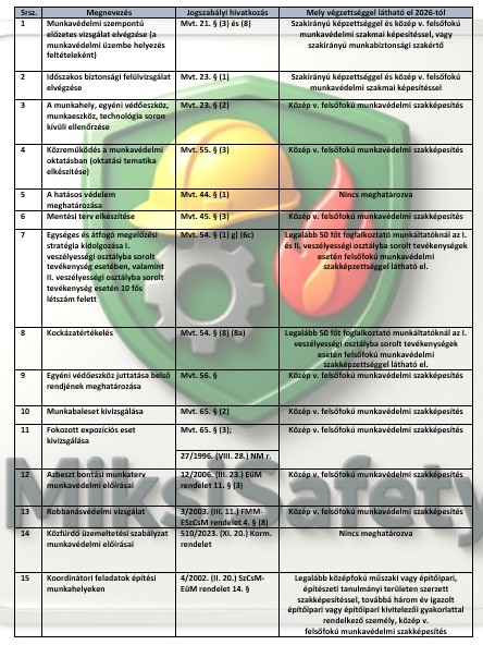 A legfontosabb változás, hogy a koordinátori feladatok ellátásához a jövőben nem elegendő csupán a munkavédelmi szakképesítés. A szabályozás pontosítja az elvárásokat, és szigorúbb feltételekhez köti a munkakör betöltését: